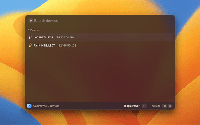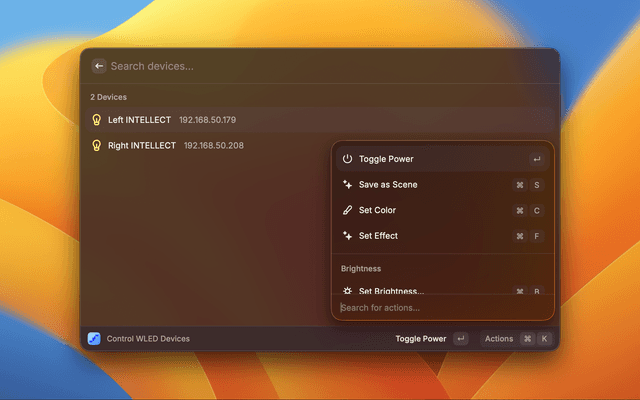 - Open Raycast and search for "Control WLED Devices"
