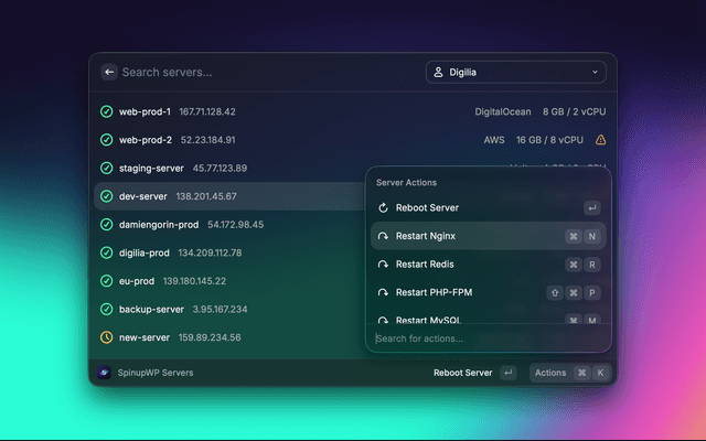 Manage your SpinupWP servers and WordPress sites directly from Raycast.