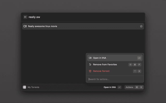 - Search Torrents Across Trackers: Add link to selfhosted Jackett parser to search for torrents across trackers and add them directly to your TorrServer from Raycast.
