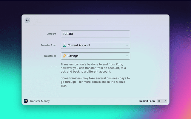 | Description | Access to Monzo account, balance, and transactions in Raycast.. |