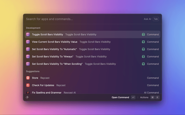 Change scroll bars visibility in macOS.