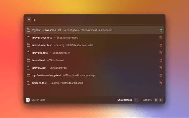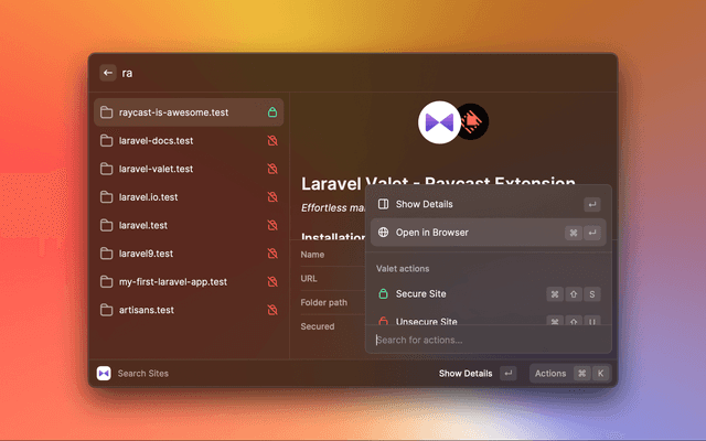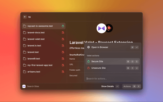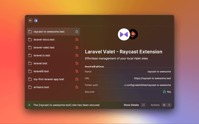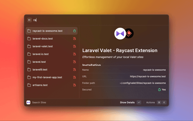 Effortless management of your local Valet sites