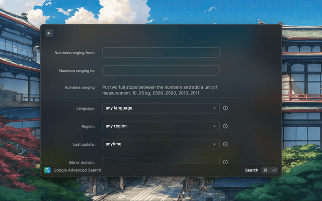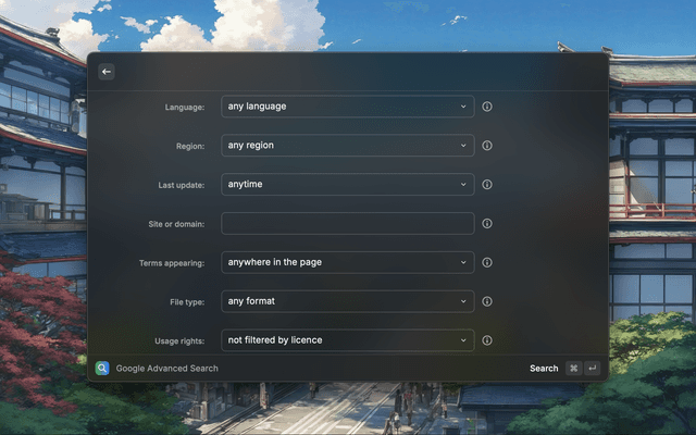 Enhance your desktop with this Raycast extension that simplifies Google's advanced search, bringing features like exact matches and domain filtration directly to macOS—ideal for quick, precise searches without needing to remember complex search options.