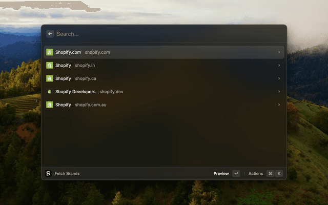 This Raycast extension allows you to interface with the Brandfetch API to fetch brand information quickly and efficiently. The extension is designed to be intuitive and easy to use, providing immediate access to brand details directly from Raycast.