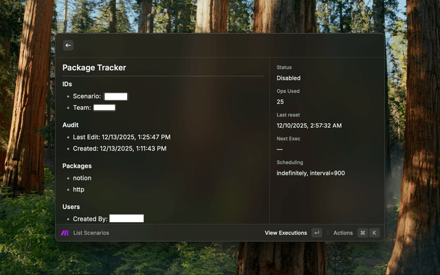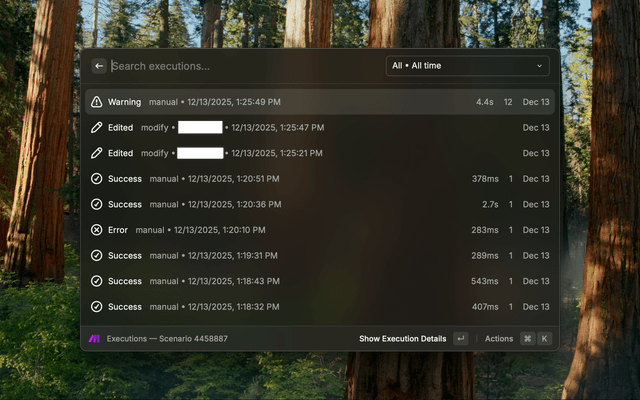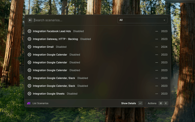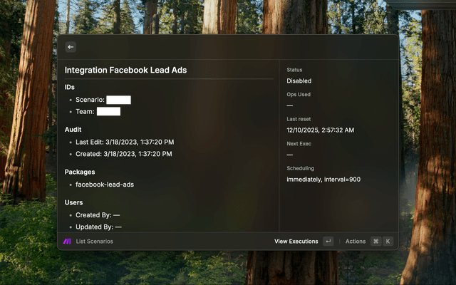 Browse and manage your Make.com scenarios from Raycast: list scenarios, view details, inspect executions, and open items in Make.com.