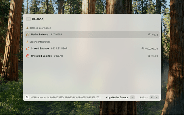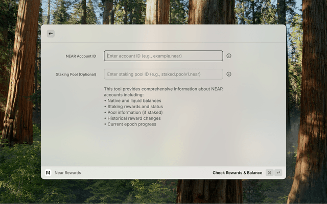 - Launch Extension: Open Raycast and search for "Near Rewards"