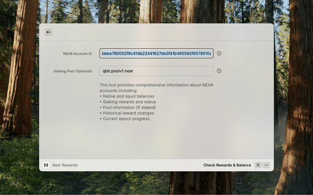 A comprehensive Raycast extension for monitoring NEAR Protocol accounts, including balances, staking rewards, lockup contracts, and historical data comparison.