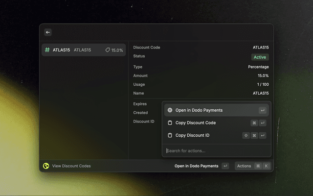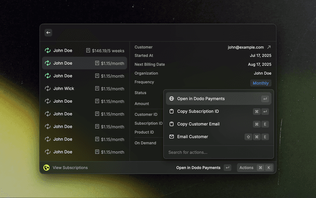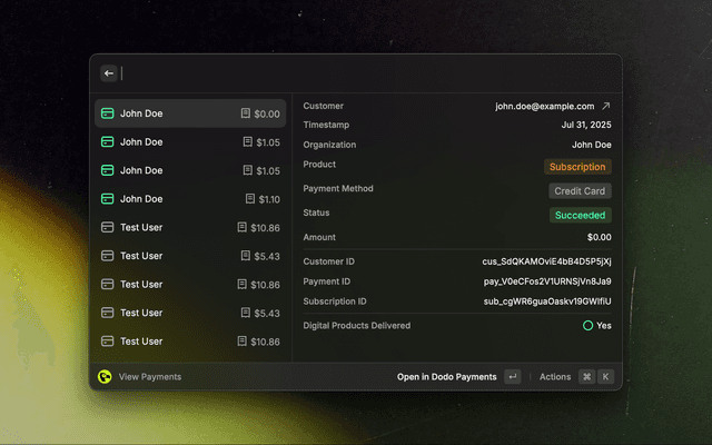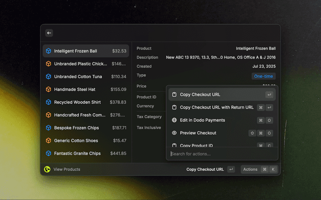 Your very own Dodo Payments dashboard, just a few keystrokes away.