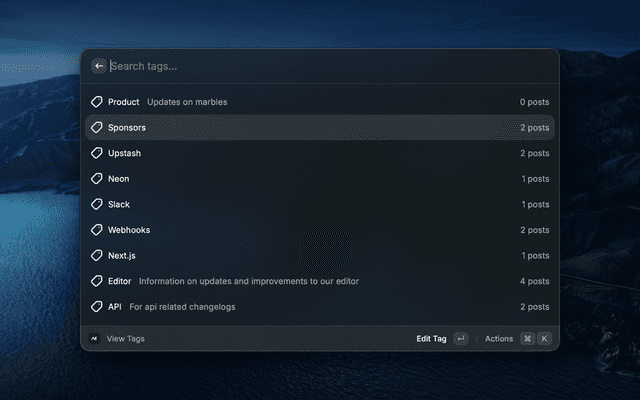 - Tags — Browse, create, edit, and delete tags.