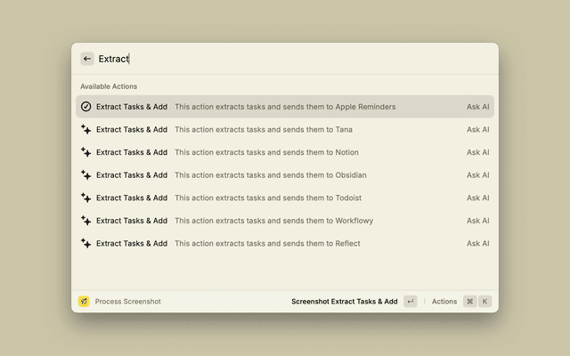 A Raycast extension to trigger Inbox AI actions directly from Raycast. Process text, audio, and screenshots with AI using your predefined actions.