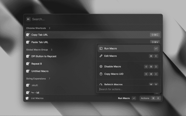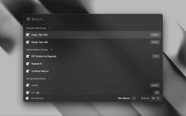 View, enable/disable and run your keyboard maestro macros from raycast.