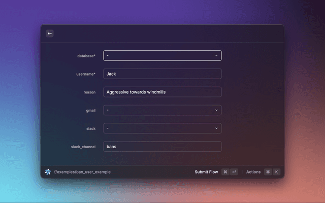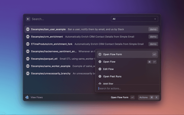 - Open Flow (CMD + Enter): Open the flow page in the Windmill web interface.