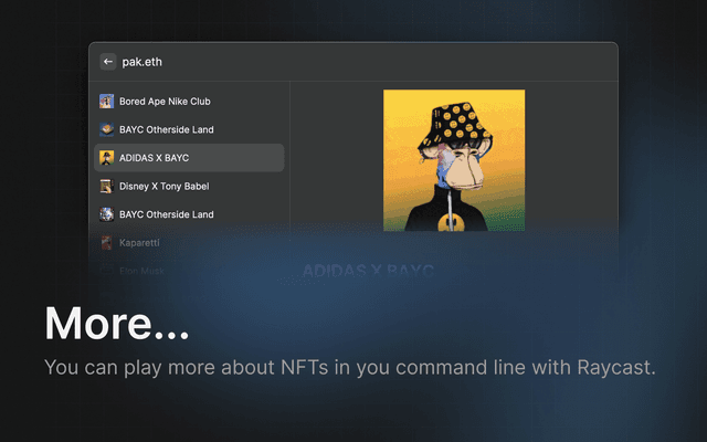 Center Raycast Extension allows you to interact with any NFT collections or assets in any blockchain, right in your command line, powered by Center's NFT API