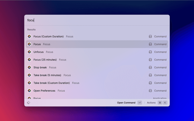 The Focus extension allows you to manage Focus app directly in Raycast.