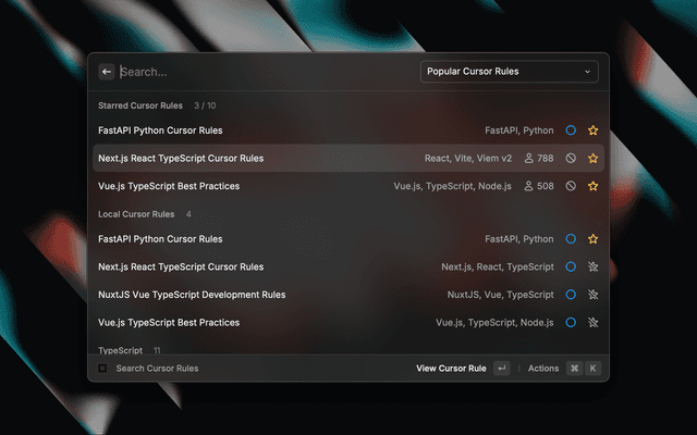 - Starring System: Save up to 10 favorite cursor rules for quick access.