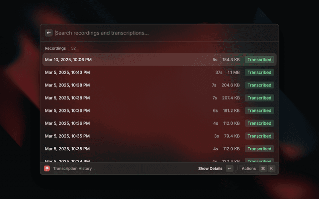 - Filter and search through your transcription history