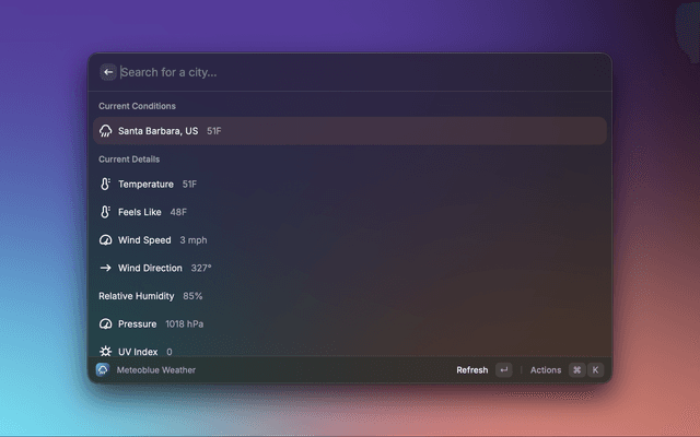 Check the weather on Meteoblue directly from Raycast.