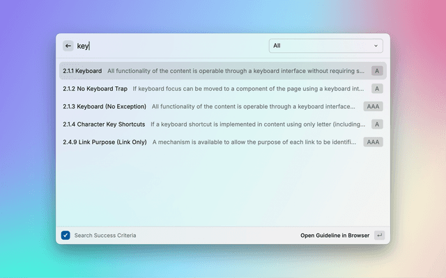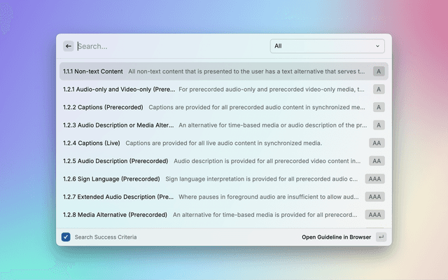 Display WCAG 2.2 success criteria