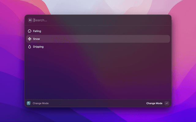 Control rain and snow and background sounds on your Mac with Rainaissance through Raycast.