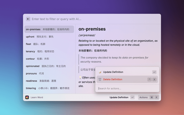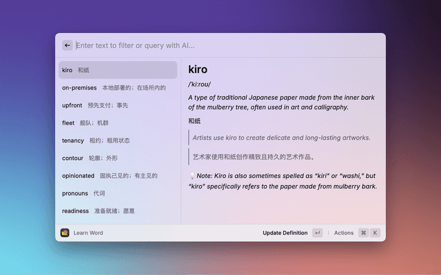 Raycast extension for quick/enriched UI interaction with the word4you CLI.