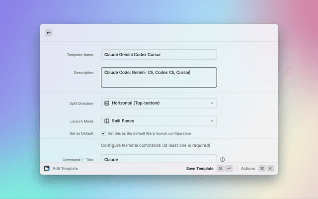 - 🚀 Quick Launch: One-click project startup with customizable Warp terminal configurations