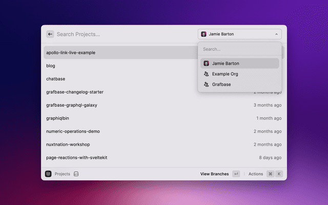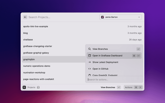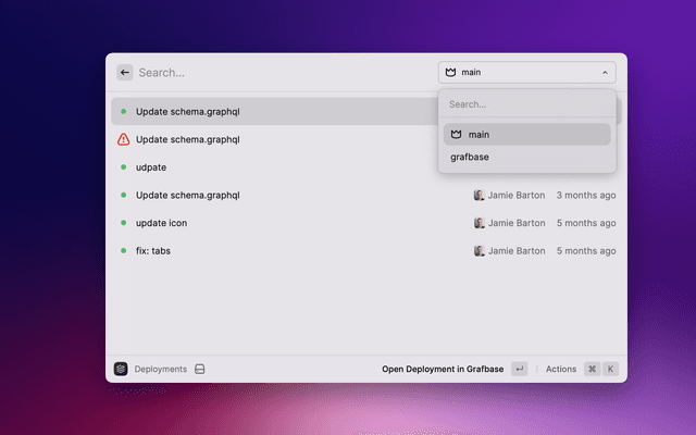 Explore your Grafbase projects, branches, deployments, and commit history.