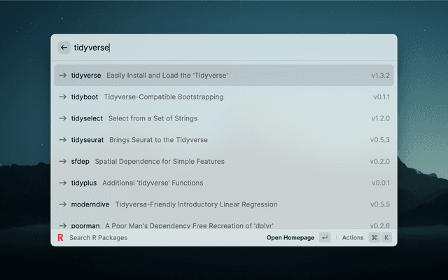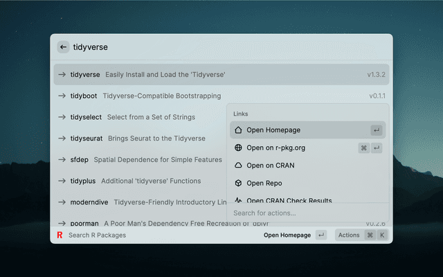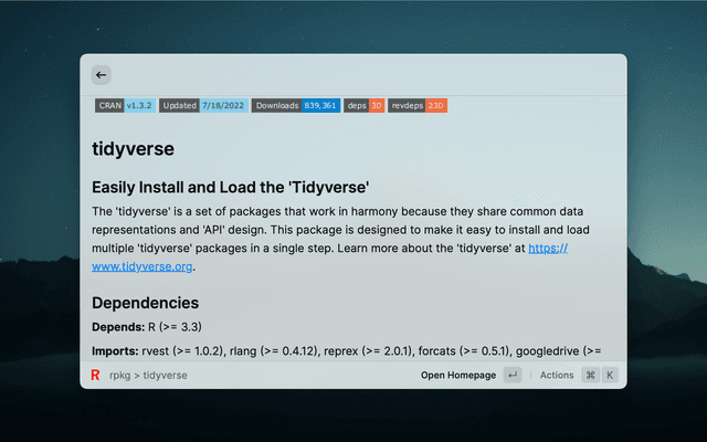 | ⌘ ↵ | Opens the package page on r-pkg.org |
