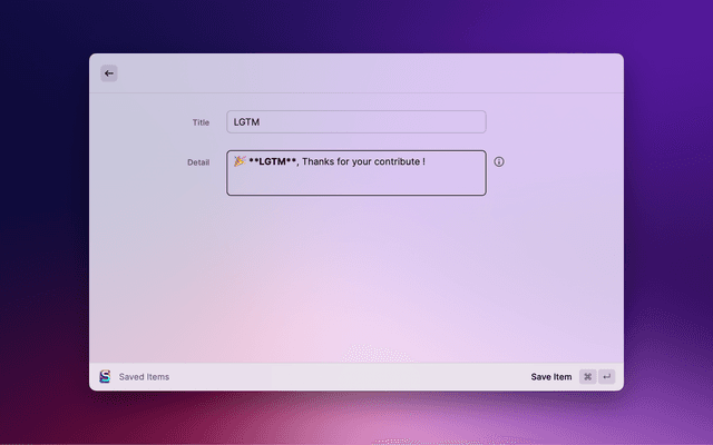 Save some items (eg. quick replies) and insert or copy them.
