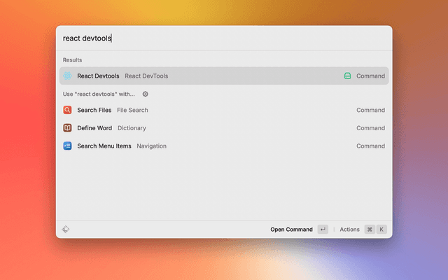 This extension simplifies the process of opening command-line applications by integrating them with Raycast. Normally, to open a command-line app, you would need to open a terminal and type the corresponding command. With this tool, you can easily open React DevTools application through Raycast, making it more efficient and seamless.