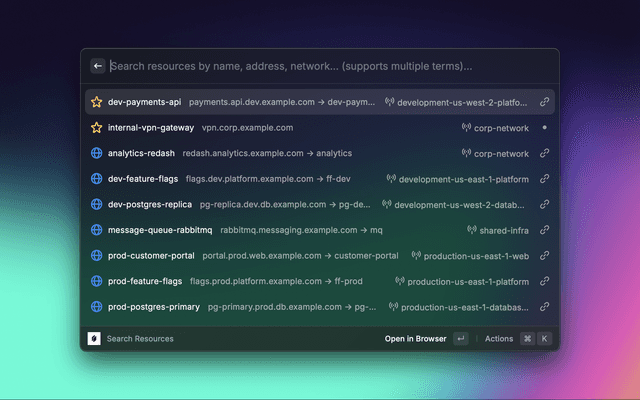 - π Advanced Search: Search resources by name, address, network, or alias with multi-term support