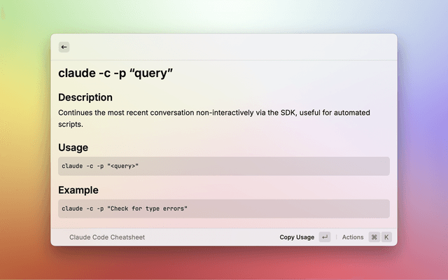 A comprehensive, interactive cheatsheet for the Claude Code CLI. Instantly access the latest commands, options, and unique thinking keywords to supercharge your development workflow.