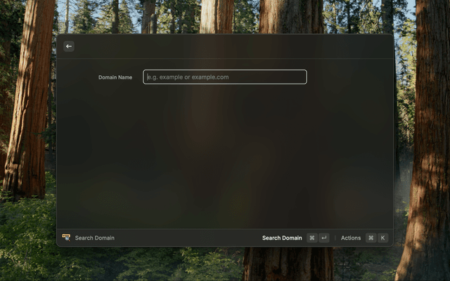This extension only sends domain names to the API for checking availability. No personal data is collected or stored outside of your local Raycast environment.