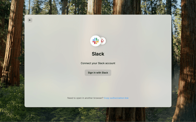 Launch either command; the first run triggers an OAuth browser window. Select the workspace → grant the requested scopes → done.