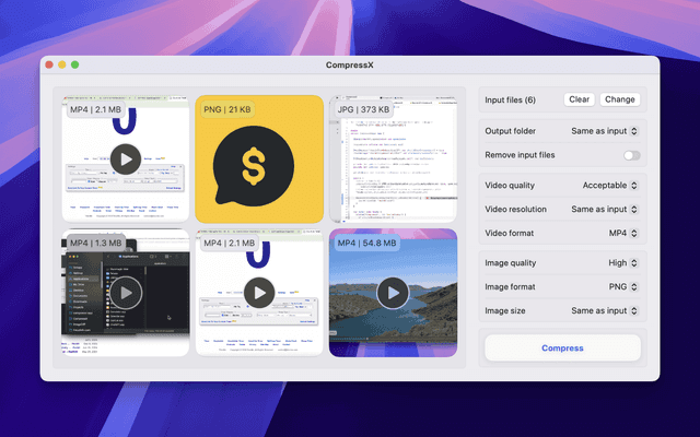 Compress files easily, with up to 90% file size reduction with Compresto.