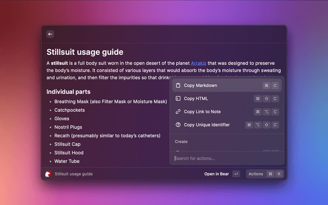 • Copy note text as HTML with Cmd + Shift + C