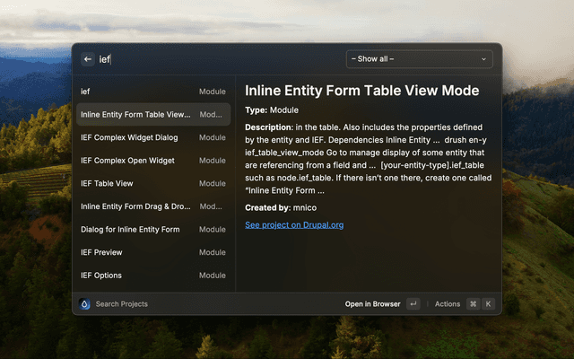 Easily access information from drupal.org to speed up development.