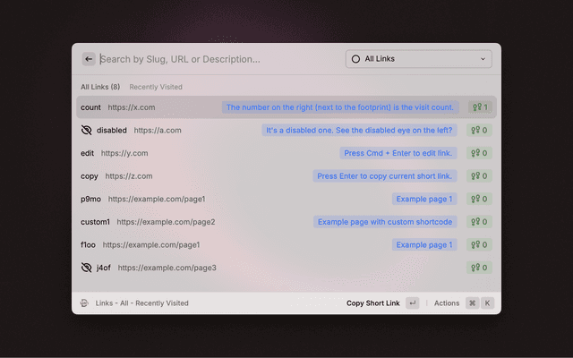 - Move pinned link down (only for pinned links)⌘ ⇧ C
