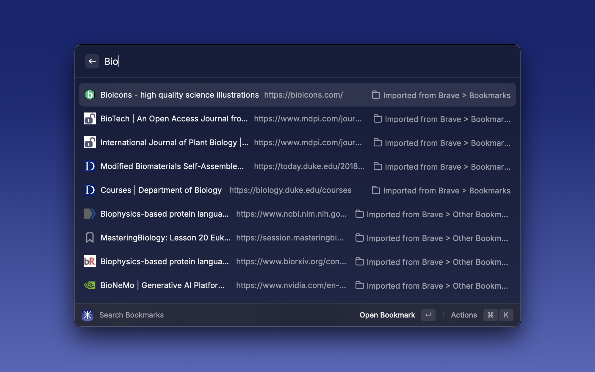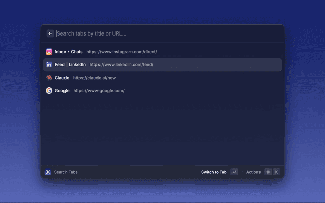 Navigate open tabs, bookmarks, and the web in Helium browser.
