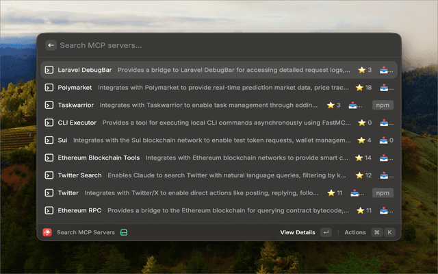 Search and discover MCP (Model Context Protocol) servers from the PulseMCP registry directly in Raycast.