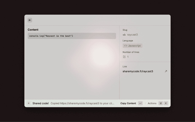 A Raycast extension allowing users to instantly share and display shared code-snippets, texts, links...
