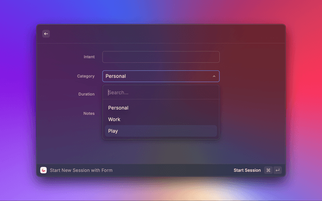 Start, stop, and save countdown timers, directly in Raycast, with no external dependencies.