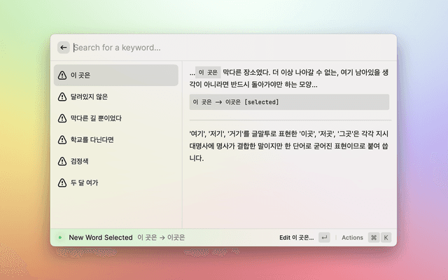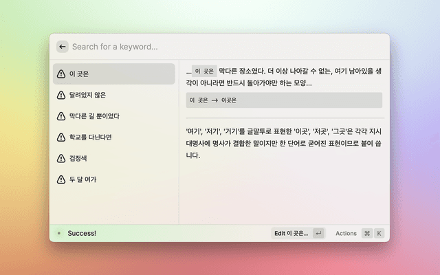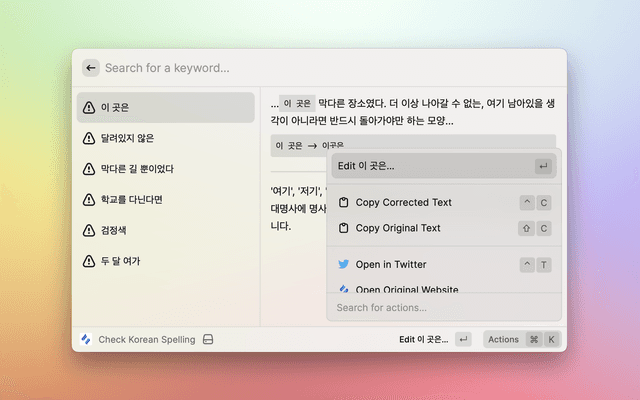 This is a raycast extension with a command to check spelling/grammar errors in your Korean text.