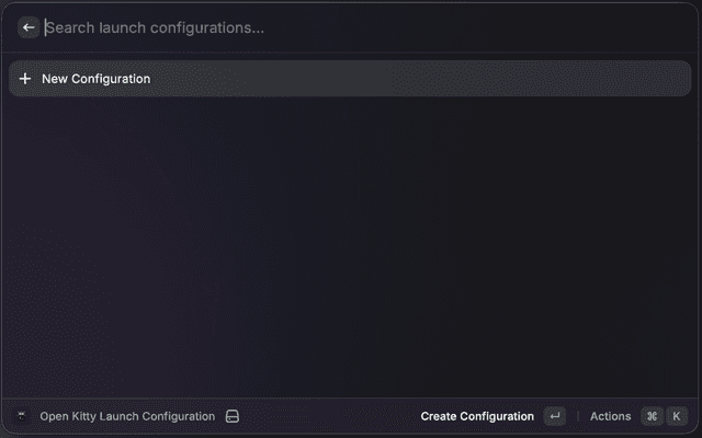 ⌘RDefine and launch multi-window, multi-tab, multi-pane Kitty sessions from YAML configurations stored in Raycast.