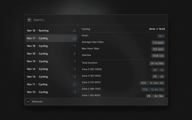 Displays your WHOOP overview.
