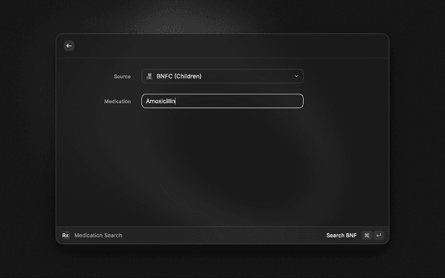 A fast, efficient Raycast extension designed for nurses, students, and healthcare professionals. It allows you to search the British National Formulary (BNF) and BNFC (Children's Formulary) directly from your keyboard.