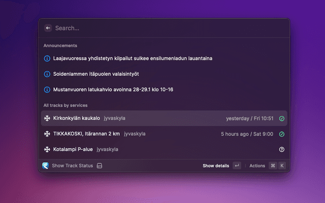 Show maintenance status for outdoors activity tracks like skiing or skating. Fetching data from the Fluent backend(s):