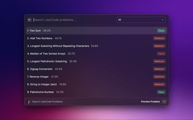 Search LeetCode problem, view LeetCode daily challenge and view LeetCode problem.