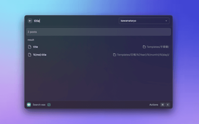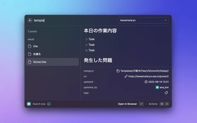 Search for posts by your team's esa. No official esa.io product.