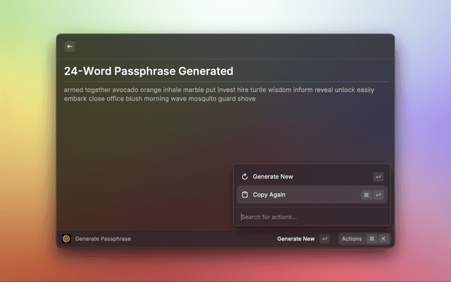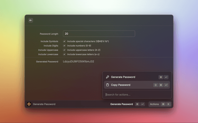 Generate Password CommandGenerate Password (Quick) CommandGenerate Passphrase CommandCommander Service Mode needs to be running in order for the Raycast extension to communicate with Keeper. If the Terminal app closes, you can easily start Commander Service Mode using this one-line command from your terminal: