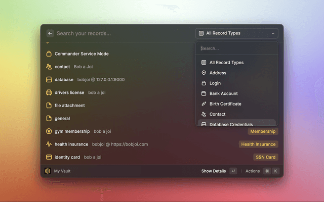 My Vault CommandPurpose: View and interact with all your vault records.
